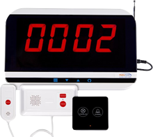 Painel eletrônico indicado para realizar a chamada de atendimento, sendo utilizado em ambientes como restaurantes/bares (chama garçom), hospitais/clínicas/casas de repouso (chama enfermeiro) ou supermercados (chama fiscal).